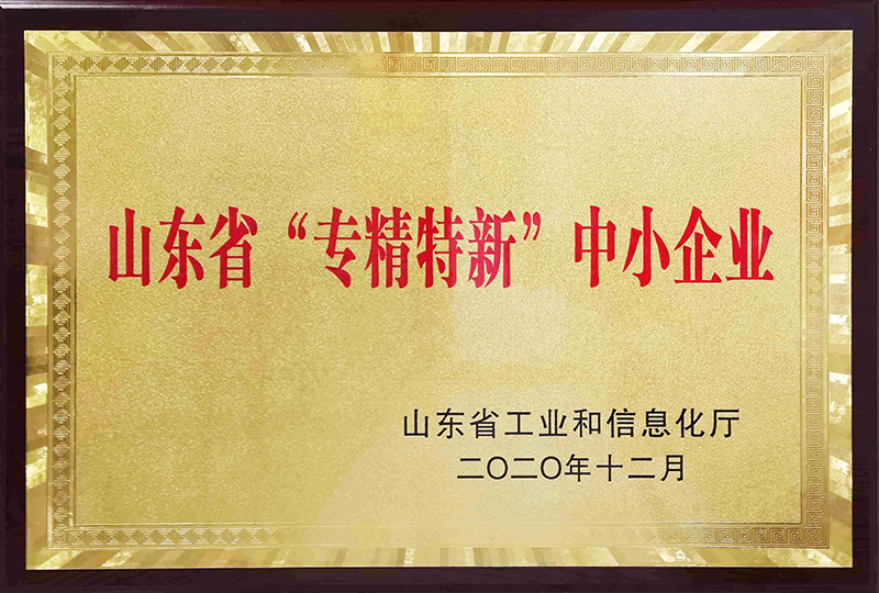 2020年12月荣获山东省“专精特新”中小企业